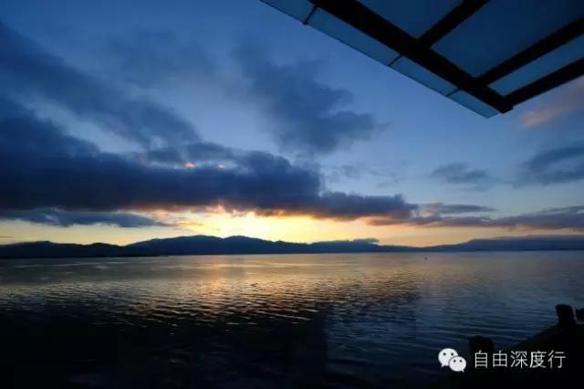 喜洲正好在双廊的对岸,住在喜洲可以看到日出,住在双廊可以看到日落,不过因为两边都有山挡着,所以看不到水上日出或者日落,火烧云也不是很红
